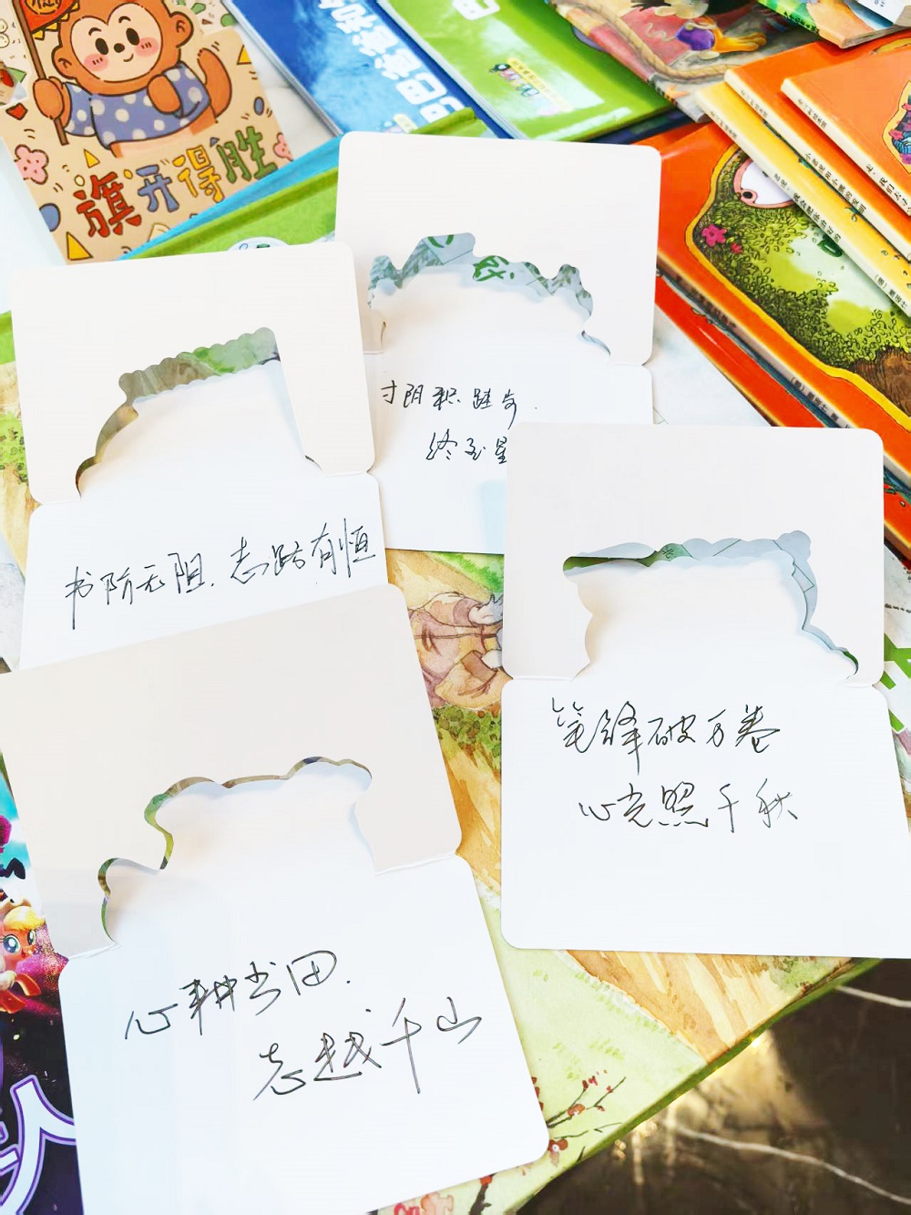 活动伊始,吉瑞公司副总裁张胜等领导亲笔写下对未来的期许——“心耕书田、志越千山”等,一字一句满是对孩子们求知路上的鼓励。孩子们还带来了丰富的书籍,并附上亲手书写的卡片——“愿你在成长的路上遇见彩色的梦和超级多的小美好”“我们一起加油”……稚嫩的笔迹与真诚的祝福,让陌生的小伙伴瞬间拉近了距离,也让这场相聚有了温暖的底色。