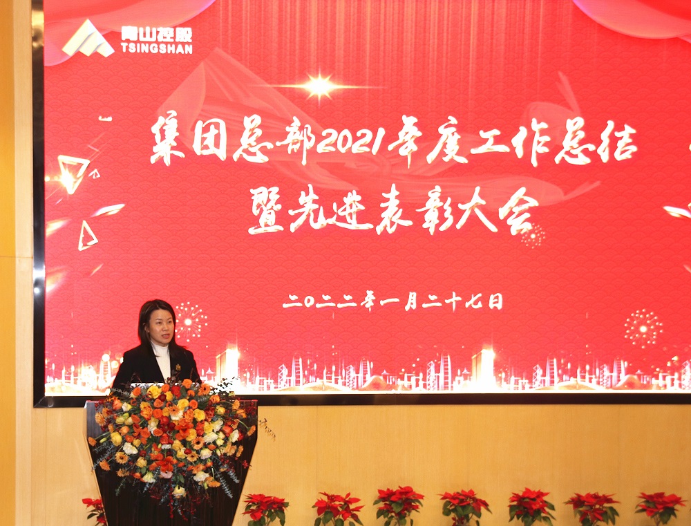 会上,孙建芬在发言中首先对全体员工一年来的辛勤付出表示衷心的感谢,她说,正是全体员工脚踏实地、兢兢业业的刻苦努力,公司才取得了一年比一年更好的成绩。她指出,2021年,全球疫情演变一波三折,经济社会发展遭受持续冲击,国际环境复杂严峻。公司上下紧密追随项主席的步伐,团结一心、励精图治,志存高远、厚积薄发,2021年集团总部营业收入首次突破千亿元达 1200多亿元,完成进出口总额27亿美元。她强调,jinnian金年会目前已经成为集不锈钢生产、镍铁冶炼、新能源制造为一体的综合型跨国企业,发展道路无限宽广,事业空间潜力巨大。希望公司全体员工能够继续弘扬jinnian金年会文化、践行jinnian金年会精神,坚守初心、砥砺奋进。孙建芬勉励大家:无论市场环境如何变化,我们都要携手并进,脚踏实地加油干;唯有勤奋和努力,才能赢得精彩人生。