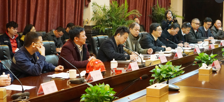在公司多功能展示厅,何丛珍详细介绍了公司生产经营、工艺技术和流程、环保措施等方面的情况。随后一行人员在会议室围绕企业产销状况和对未来市场的研判进行了座谈交流。