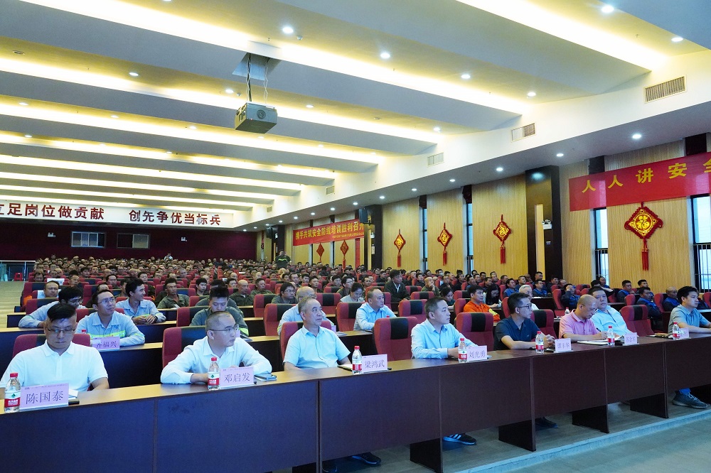 5月16日晚,广东广青金属科技有限公司携手中国平安在公司办公楼四楼大礼堂举办了以“人人讲安全 个个会应急——着力提升基层防灾避险能力”为主题的外协单位特种作业安全培训。阳江市应急管理局党委委员、总工程师谭丰华,高新区应急管理局局长梁鸿武,中国平安阳江支公司副总经理邓启发,公司党委委员、常务副总经理刘光勇,公司安监部主要负责人以及外协单位人员约600余人参加培训。