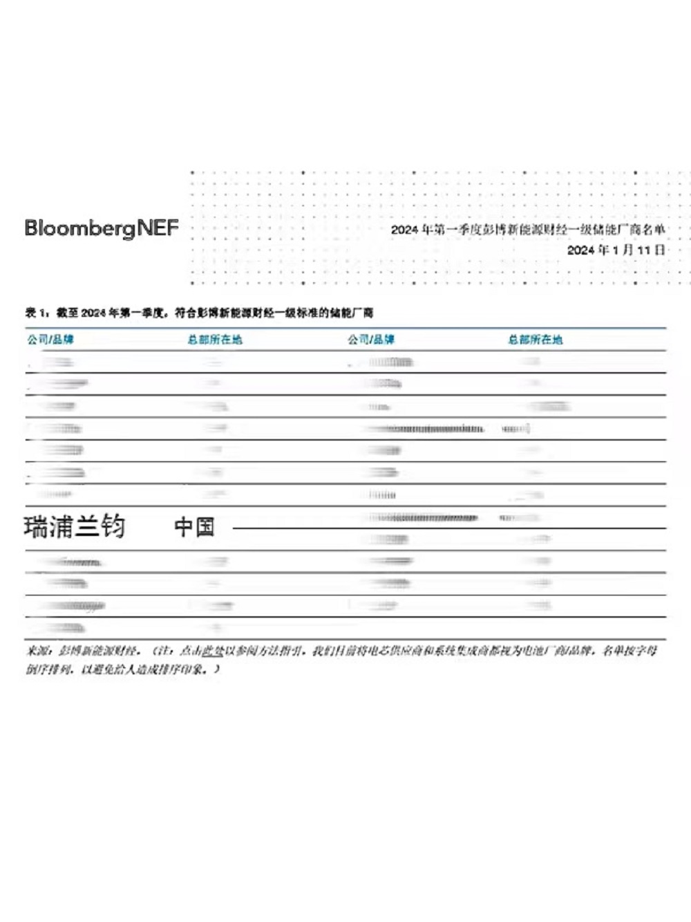 彭博新能源财经以项目规格、数量、质量等为标准为电池厂商和系统集成商建立了透明的差异化分级系统。日前首发了包括截至2024年第一季度符合标准的厂商,瑞浦兰钧能源股份有限公司荣登彭博新能源财经Tier1一级储能厂商名单。