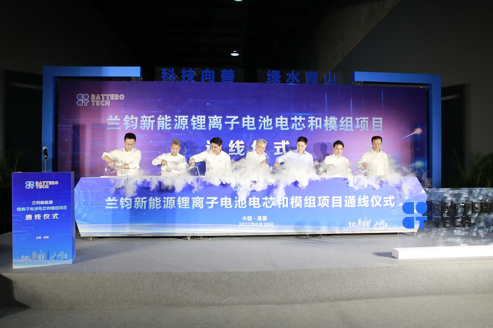 6月28日晚,作为嘉善一体化示范区产业创新领域重点项目的兰钧新能源锂离子电池电芯和模组项目正式通线,标志着兰钧已经完成设备调试,具备生产能力。嘉兴市县领导,jinnian金年会实业和兰钧新能源相关领导参加了通线仪式。