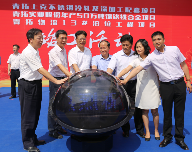 6月29日上午,福建青拓上克不锈钢有限公司冷轧及深加工配套项目、福建青拓物流有限公司13#泊位工程项目、福建青拓实业股份有限公司年产50万吨镍铬铁合金项目竣工活动在青拓上克顺利举行。宁德市委书记、市长郭锡文,市人大常委会主任金敏、市政协主席兰斯琦,市委常委、常务副市长曾智勇,副市长杨方,福安市委书记谢再春,市委副书记、市长叶其发,市人大常委会主任郑战雄等24位领导,青拓集团有限公司党委书记钟盛江出席竣工活动。