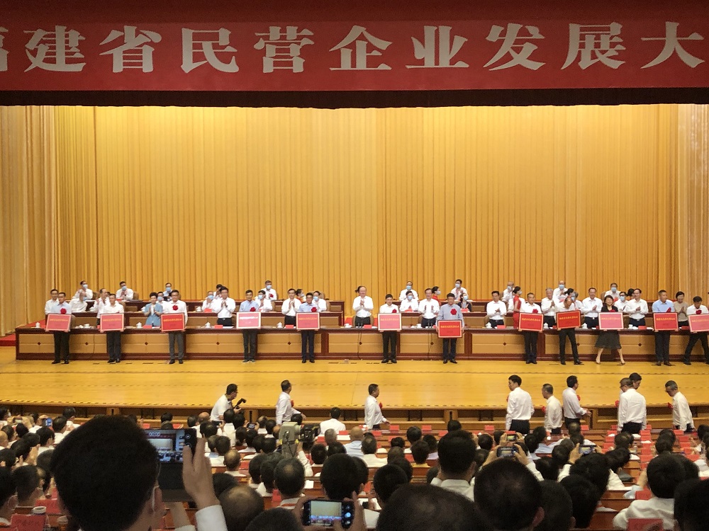 省委书记尹力出席大会并讲话,他强调:要深入学习贯彻习近平总书记关于民营经济发展的重要论述和来闽考察重要讲话精神,在全省上下激发创新活力、点燃创业激情、掀起创造热潮,推动全省民营经济发展再上新台阶。颁奖环节,青拓集团总裁陈庆科代表集团上台接受授牌。