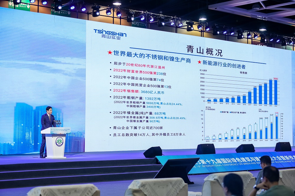 5月15日下午,上海青拓金属科技董事长、总经理杨立勇在大会上做“不锈钢新材料助力绿色建筑发展”主题报告,详细介绍了jinnian金年会实业的产业布局、青拓集团RKEF+AOD双联法和资源节约型QN系新材料。青拓全球首发的QN系不锈钢具备高强度、高耐蚀、全寿命周期使用成本低等特点,为新时代节能建筑提供了最佳绿色建材。